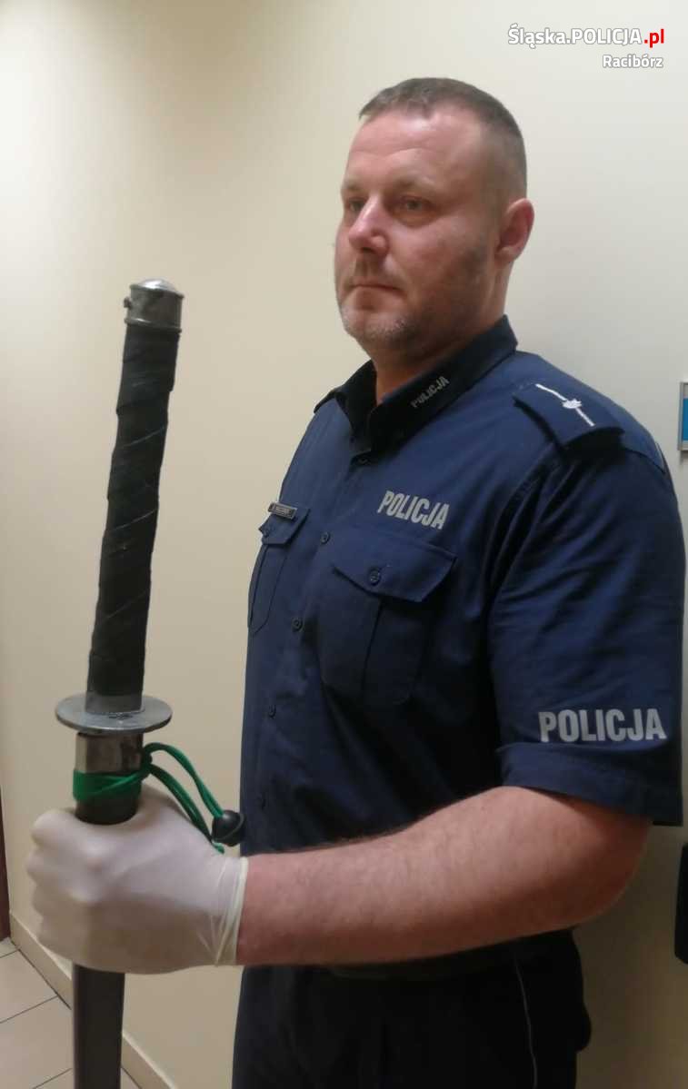 Raciborscy policjanci zatrzymali mężczyznę podejrzanego o uszkodzenie drzwi wejściowych oraz wdarcie się do mieszkania 31-letniej kobiety. Mundurowi zabezpieczyli miecz, który miał przy sobie 44-latek. Teraz podejrzany za naganne zachowanie może spędzić nawet 5 lat w więzieniu.