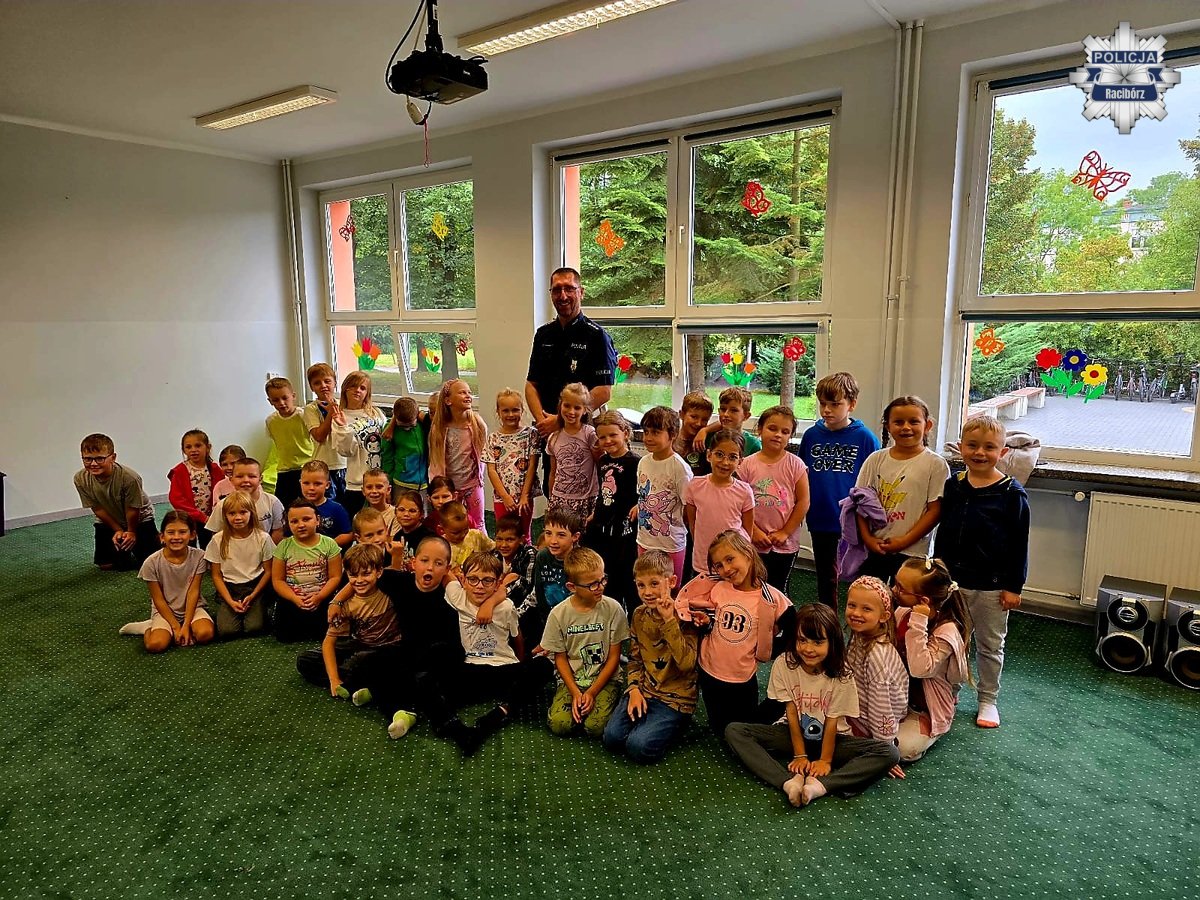 W Szkole Podstawowej nr 15 w Raciborzu odbyło się spotkanie profilaktyczne z udziałem asp. sztab. Tomasza Florka z Wydziału Ruchu Drogowego Komendy Powiatowej Policji w Raciborzu. Policjant w przystępny i praktyczny sposób przypomniał uczniom najważniejsze zasady bezpiecznego poruszania się po drogach.