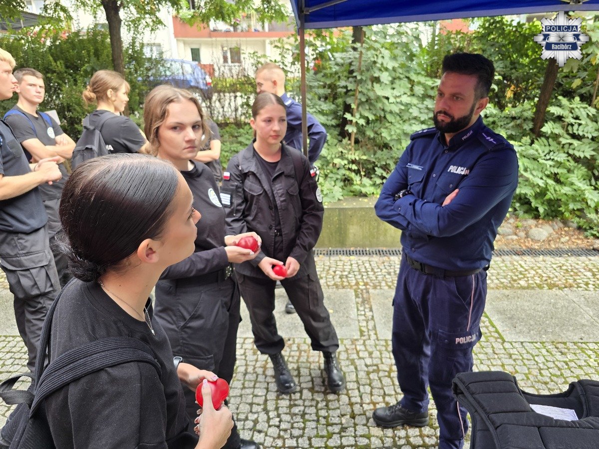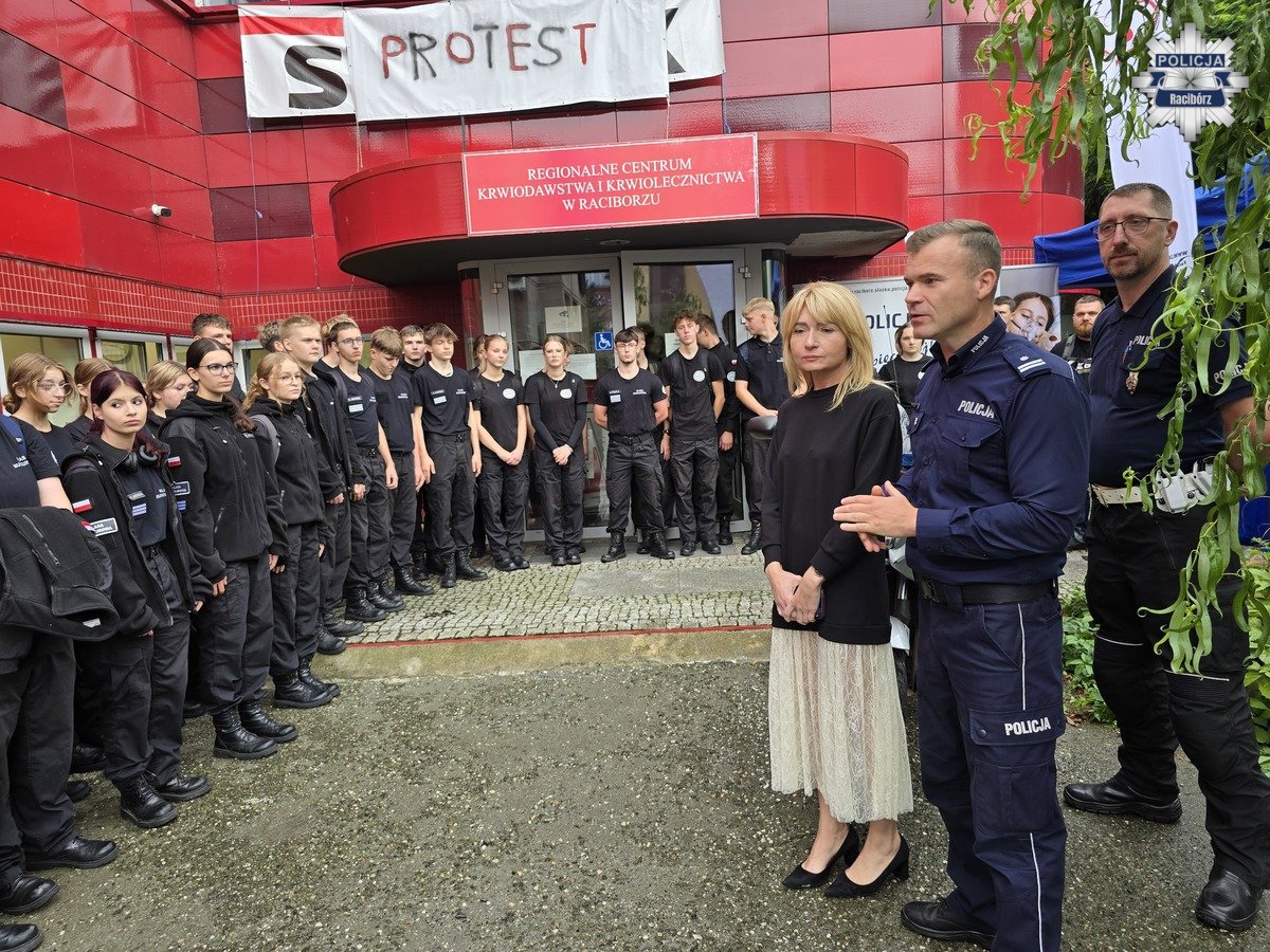 Podczas wydarzenia przygotowano również stoisko profilaktyczne, na którym policjanci rozmawiali o zasadach rekrutacji do służby i zachęcali młodych ludzi do wstąpienia w szeregi Policji. Akcję odwiedzili uczniowie oddziałów mundurowych z Zespołu Szkół Ekonomicznych w Raciborzu oraz Zespołu Szkół Ogólnokształcących Mistrzostwa Sportowego w Raciborzu. Pełnoletni uczniowie aktywnie włączyli się w inicjatywę i wspólnie z policjantami oddali krew, a pozostali mieli okazję porozmawiać z Komendantem oraz funkcjonariuszami o specyfice służby, możliwościach rozwoju i znaczeniu działań profilaktycznych.