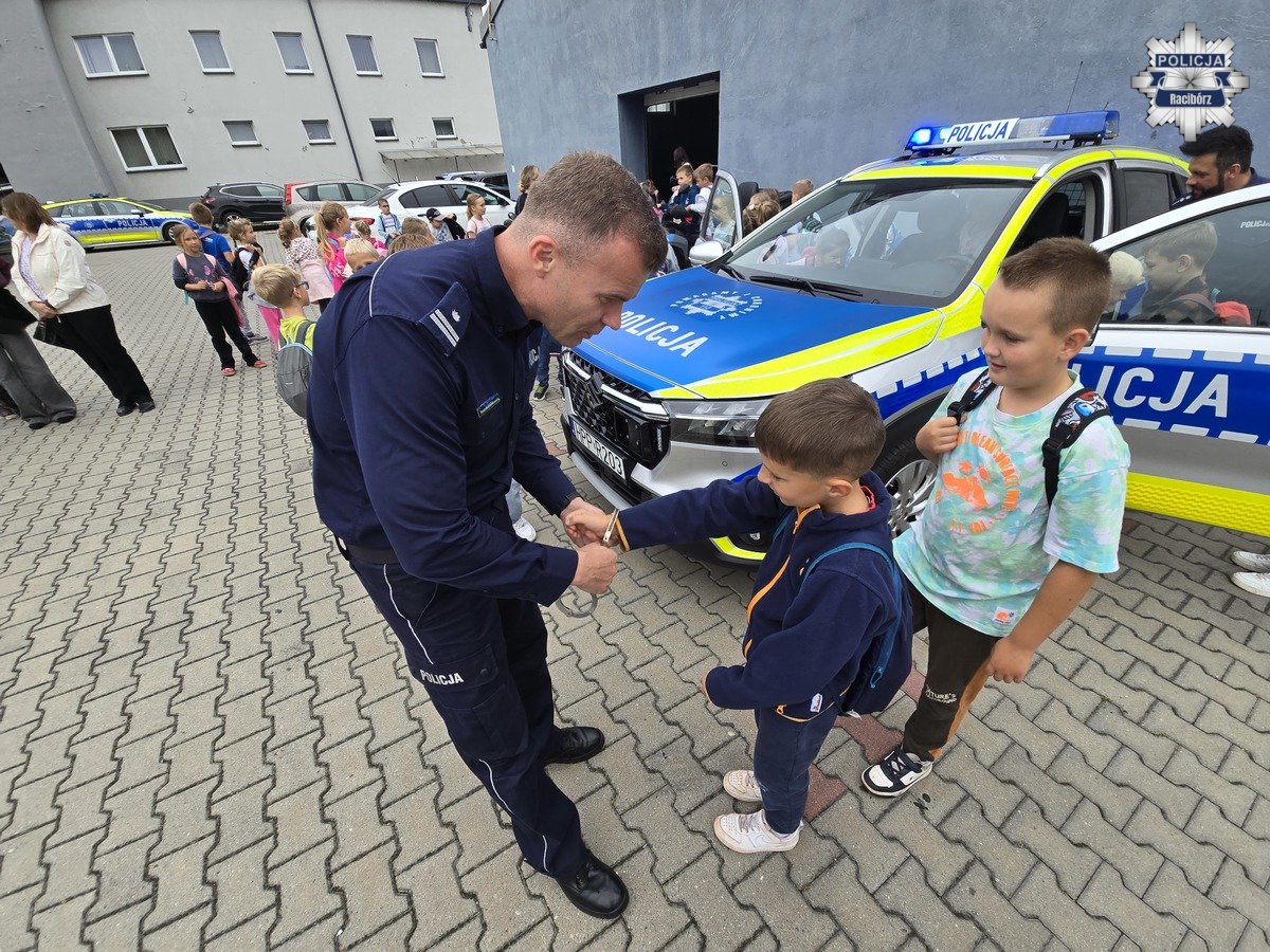 Wizyta uczniów w raciborskiej komendzie rozpoczęła się od serdecznego powitania przez Komendanta Powiatowego Policji w Raciborzu, podinsp. Marka Ryszke, który przybliżył dzieciom rolę i zadania policjantów w codziennej służbie. Następnie najmłodsi goście mieli okazję z bliska obejrzeć policyjny radiowóz. Dzieci były szczególnie zainteresowane jego wyposażeniem – sygnałami świetlnymi i dźwiękowymi, które mogły zobaczyć i usłyszeć na własne oczy i uszy.
