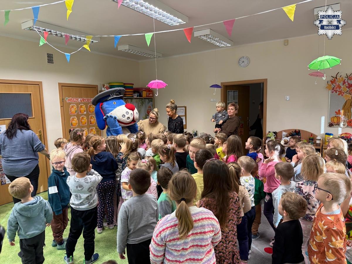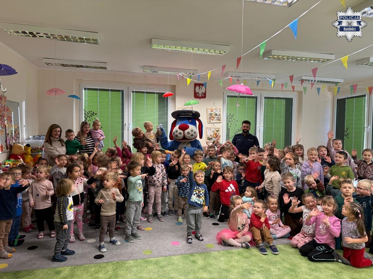 Policjant z Raciborza odwiedził Przedszkole nr 3, aby porozmawiać z dziećmi o zasadach bezpieczeństwa. W spotkaniu uczestniczyła również policyjna maskotka Sznupek, która szybko podbiła serca najmłodszych. Przedszkolaki uczyły się, jak bezpiecznie zachowywać się na drodze i w codziennych sytuacjach.