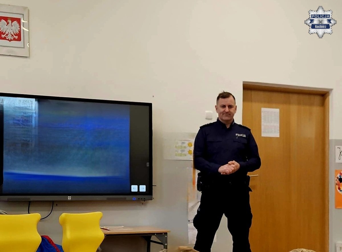 Dzielnicowy z Komendy Powiatowej Policji w Raciborzu odwiedził Szkołę Podstawową nr 4 i spotykał się z uczniami klasy siódmej. Podczas prelekcji poruszył temat bezpieczeństwa, odpowiedzialności oraz hejtu w Internecie. Funkcjonariusz zachęcał młodzież do świadomego korzystania z sieci i reagowania na zagrożenia.