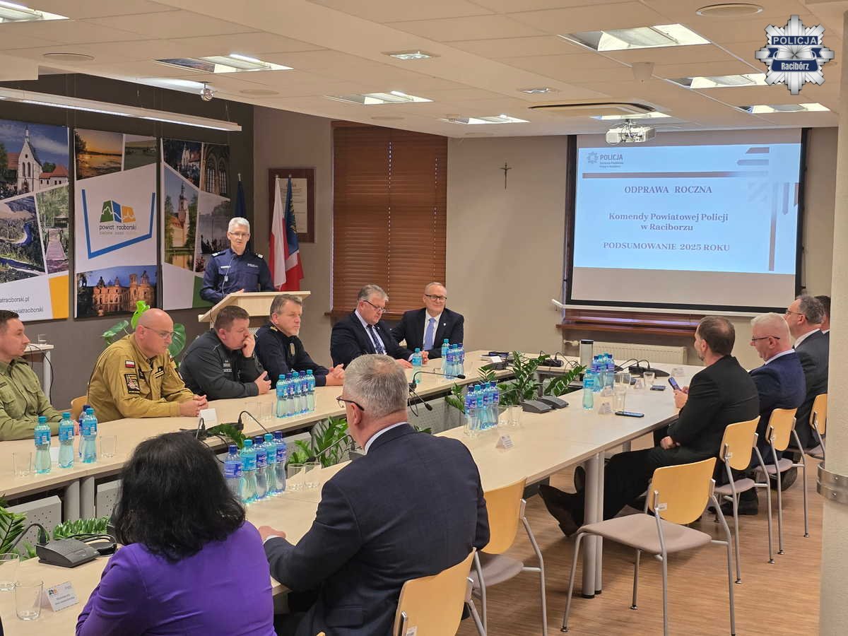 Kolejno Komendant Powiatowy Policji w Raciborzu mł.insp. Tomasz Hynek omówił wyniki osiągnięte przez Wydział Kryminalny, Wydział do Walki z Przestępczością Gospodarczą, Wydział Prewencji, Wydział Ruchu Drogowego oraz pion logistyczny. Przedstawił także priorytety i cele wyznaczone do realizacji w 2026 roku. Komendant podziękował za wsparcie oraz dobrą współpracę raciborskiemu sądowi, prokuraturze i samorządom, podkreślając jej znaczenie dla bezpieczeństwa mieszkańców powiatu.