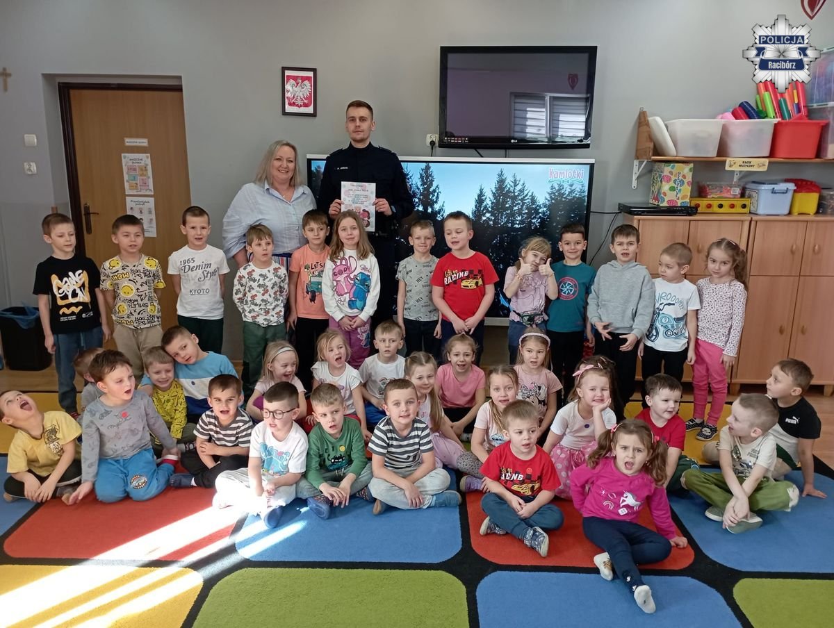 Funkcjonariusze rozmawiali z dziećmi o zasadach bezpiecznego zachowania zimą, zarówno podczas zabaw na śniegu i lodzie, jak i w ruchu drogowym. Omówiono zagrożenia związane z zabawami na świeżym powietrzu: wchodzenie na zamarznięte zbiorniki wodne, ślizganie się w miejscach nieprzystosowanych oraz ryzykownym korzystaniem z urządzeń zimowych. Duży nacisk położono również na bezpieczeństwo podczas podróży samochodem oraz prawidłowe korzystanie z odblasków po zmroku.