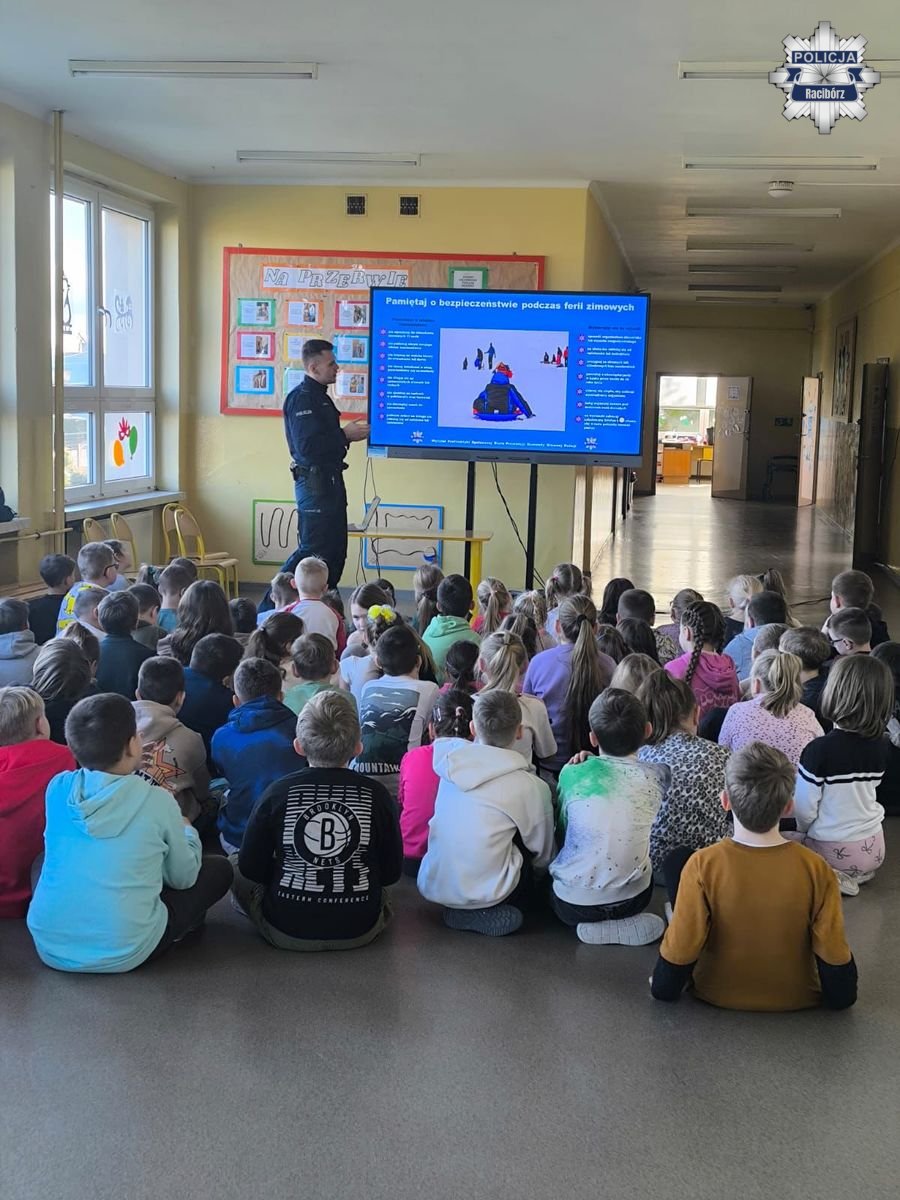 W pierwszych dniach ferii zimowych policjanci odwiedzili uczniów Szkoły Podstawowej nr 4 w Raciborzu oraz Szkoły podstawowej w Bieńkowicach, a także przeprowadzili spotkania w profilaktyczne w szkołach podstawowych w Krzyżanowicach i Zabełkowie oraz w przedszkolu w Chałupkach. Wszystkie działania odbyły się w ramach akcji Bezpieczne Ferie.