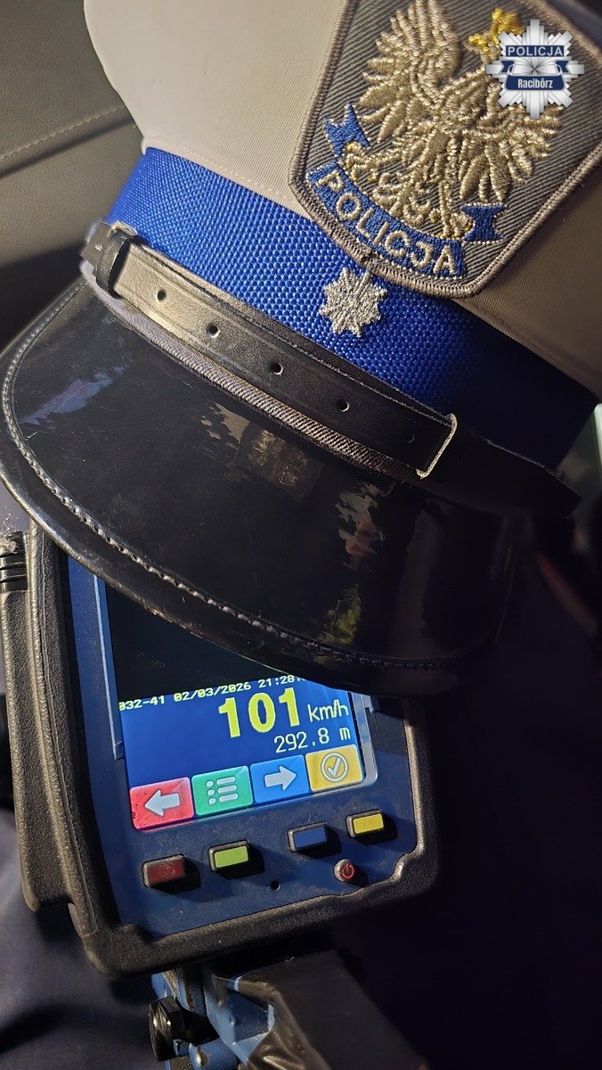 Wczoraj funkcjonariusze Wydziału Ruchu Drogowego raciborskiej komendy prowadzili na ulicy Raciborskiej w Kornowacu działania kontrolne w ramach profilaktyki bezpieczeństwa w ruchu drogowym. O godzinie 21.30 zatrzymali do kontroli kierującego pojazdem marki Hyundai. Pomiar wykazał, że 55-letni mężczyzna poruszał się z prędkością 101 km/h w miejscu, gdzie obowiązuje ograniczenie do 50 km/h. Kierujący został ukarany mandatem karnym, a jego prawo jazdy zostało zatrzymane.
