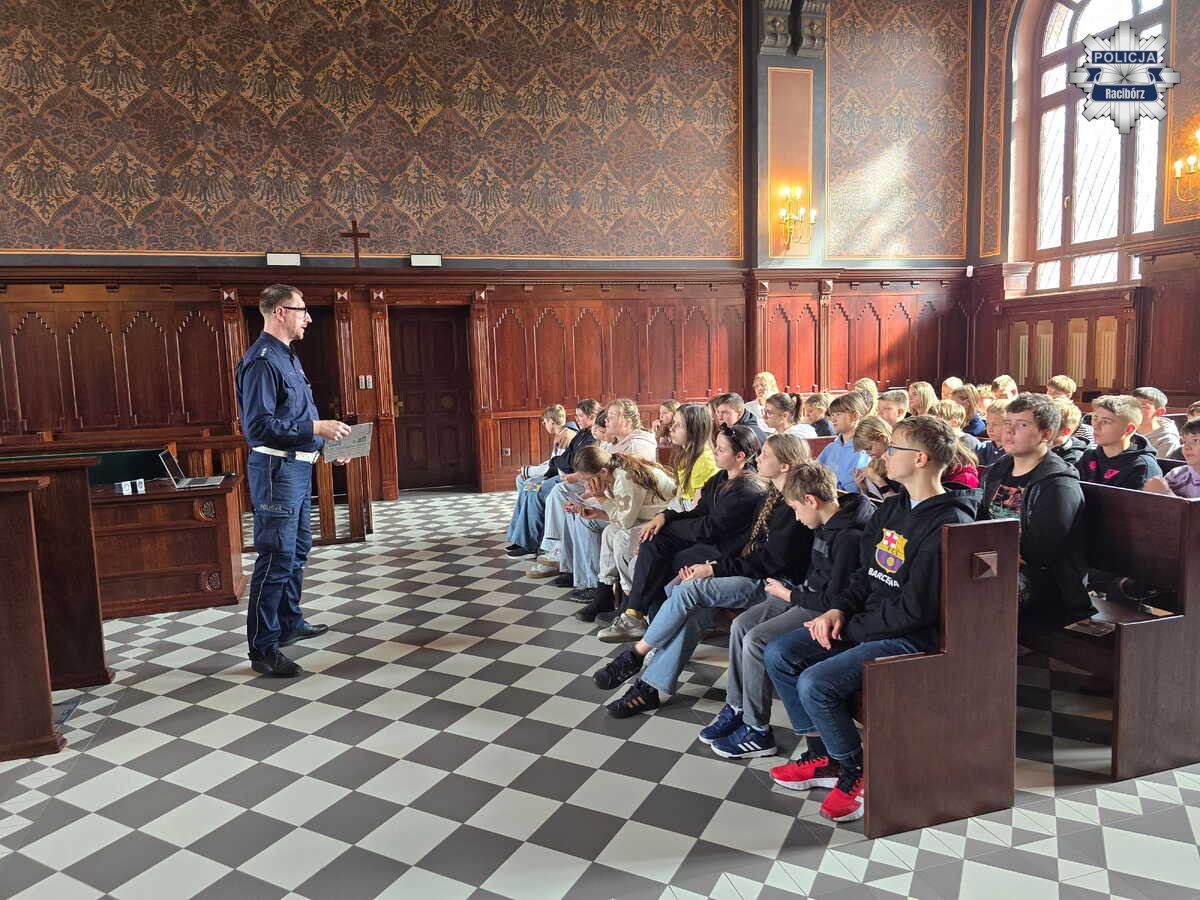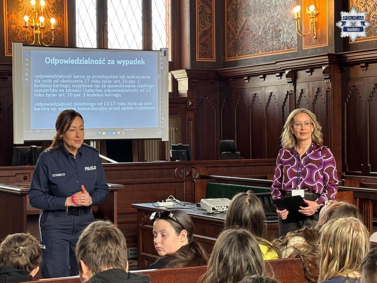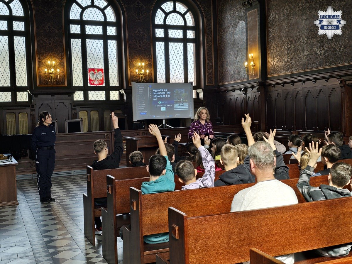 Dziś w Sądzie Rejonowym w Raciborzu odbyło się spotkanie z młodzieżą poświęcone przepisom prawa i bezpieczeństwu. W wydarzeniu uczestniczyli policjanci oraz Prezes Sądu Rejonowego w Raciborzu. Tematem rozmów była m.in. odpowiedzialność nieletnich oraz zasady korzystania z hulajnóg.