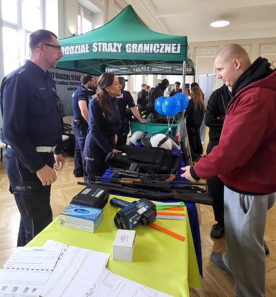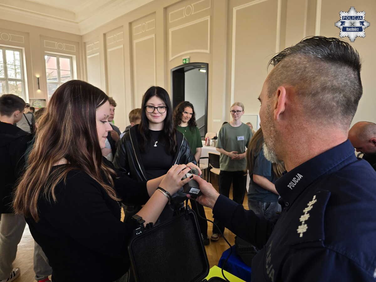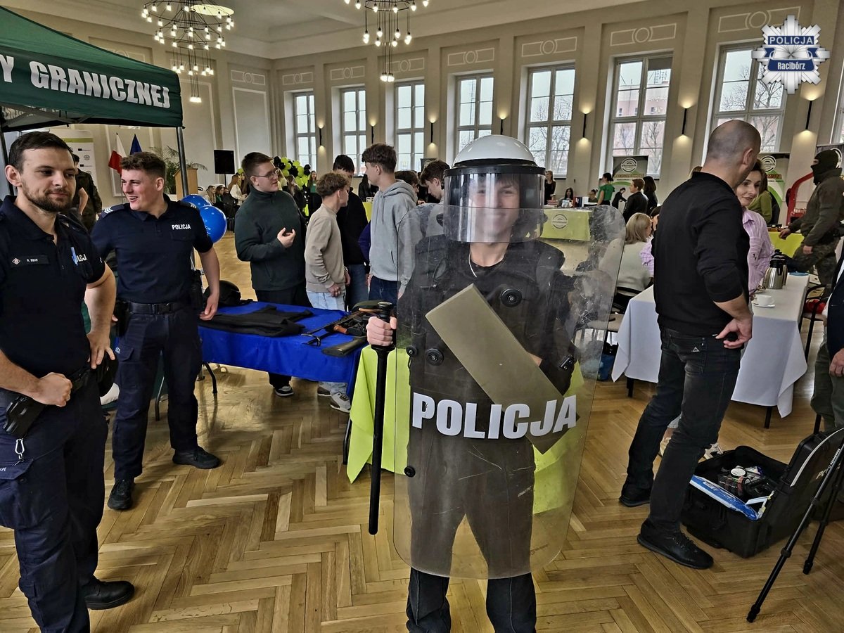 Raciborscy policjanci przez dwa dni uczestniczyli w dniach otwartych Zespołu Szkół Ekonomicznych w Raciborzu. W trakcie wydarzenia funkcjonariusze spotykali się z uczniami, w tym z młodzieżą z oddziałów mundurowych, prezentując sprzęt policyjny oraz opowiadając o codziennej służbie.
