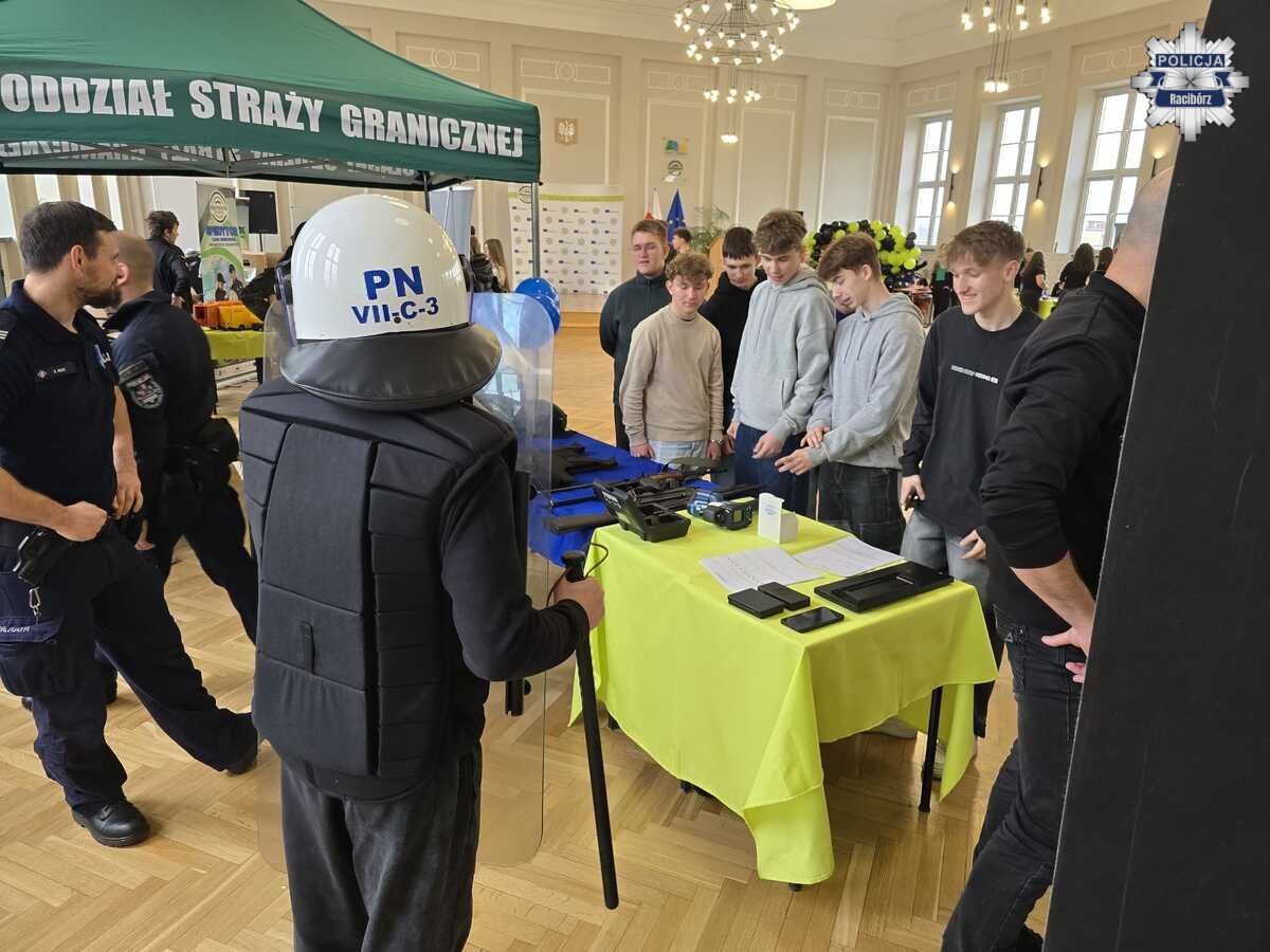 Raciborscy policjanci przez dwa dni uczestniczyli w dniach otwartych Zespołu Szkół Ekonomicznych w Raciborzu. Funkcjonariusze zaprezentowali sprzęt służbowy oraz przybliżyli specyfikę swojej pracy. Spotkania były okazją do rozmów z młodzieżą, w tym z uczniami klas o profilu mundurowym.