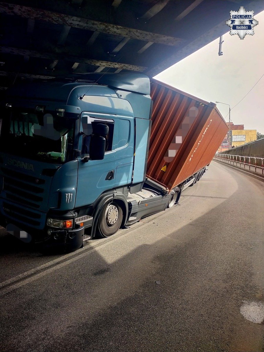 Następnie około godziny 13:30 na ulicy Rybnickiej pod wiaduktem zablokował się pojazd ciężarowy marki Scania. Droga była przez około 2 godziny nieprzejezdna. Kierujący 76-letni mężczyzna został ukarany mandatem karnym.