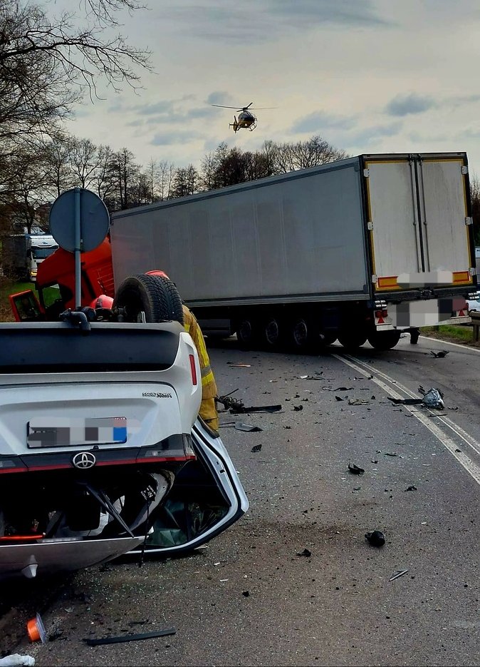 Następnie, około godziny 15:30 na ulicy Rudzkiej w Babicach doszło do zdarzenia drogowego z udziałem pojazdu osobowego i ciężarowego. Jak wynika ze wstępnych ustaleń policjantów kierujący pojazdem marki Toyota, jadąc w kierunku Gliwic, przekroczył oś jezdni i zderzył się z pojazdem ciężarowym marki Iveco. W wyniku zdarzenia samochód osobowy dachował, a 70-letni kierowca toyoty oraz 35-letni kierowca pojazdu ciężarowego zostali przetransportowani do szpitala. Droga w tym miejscu była zablokowana przez kilka godzin.
