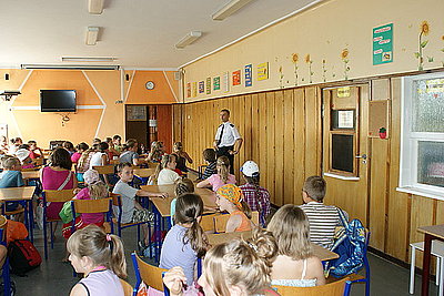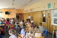 W dniu 10 lipca w ramach prowadzonej akcji ,, Bezpieczne Wakacje 2012 ,, przedstawiciel raciborskiej komendy Policji wraz z Państwowym Inspektorem Pracy odwiedzili półkolonie w Pietrowicach Wielkich. Spotkanie odbyło się na terenie szkoły.