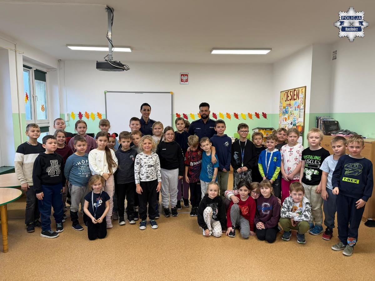 Policjant z Komendy Policji w Raciborzu wraz z dzielnicową odwiedzili Zespół Szkolno-Przedszkolny nr 3, by przeprowadzić zajęcia profilaktyczne dla uczniów klas 1 i 3. Spotkanie skupiało się na przeciwdziałaniu agresji i przemocy, a także na budowaniu prawidłowych relacji rówieśniczych i umiejętności radzenia sobie w sytuacjach konfliktowych. Policjanci omawiali z dziećmi, jak reagować na niewłaściwe zachowania, kiedy szukać pomocy dorosłych oraz jak ważne jest szanowanie innych i dbanie o bezpieczeństwo swoje i kolegów.