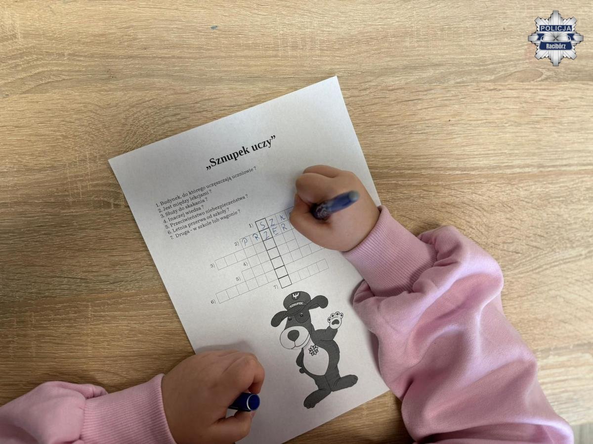 W czwartek policjanci realizujący zadania z zakresu profilaktyki społecznej przeprowadzili spotkanie z dziećmi w raciborskiej strefie, którego celem było promowanie bezpiecznych zachowań w czasie nadchodzących ferii zimowych. Funkcjonariusze przypomnieli podstawowe zasady dotyczące odpowiedzialnego spędzania wolnego czasu, w tym bezpieczeństwa podczas zabaw zimowych oraz właściwego reagowania w sytuacjach zagrożenia. W celu utrwalenia przekazanych treści uczestnicy rozwiązywali przygotowane krzyżówki tematyczne, a aktywny udział był nagradzany upominkami.