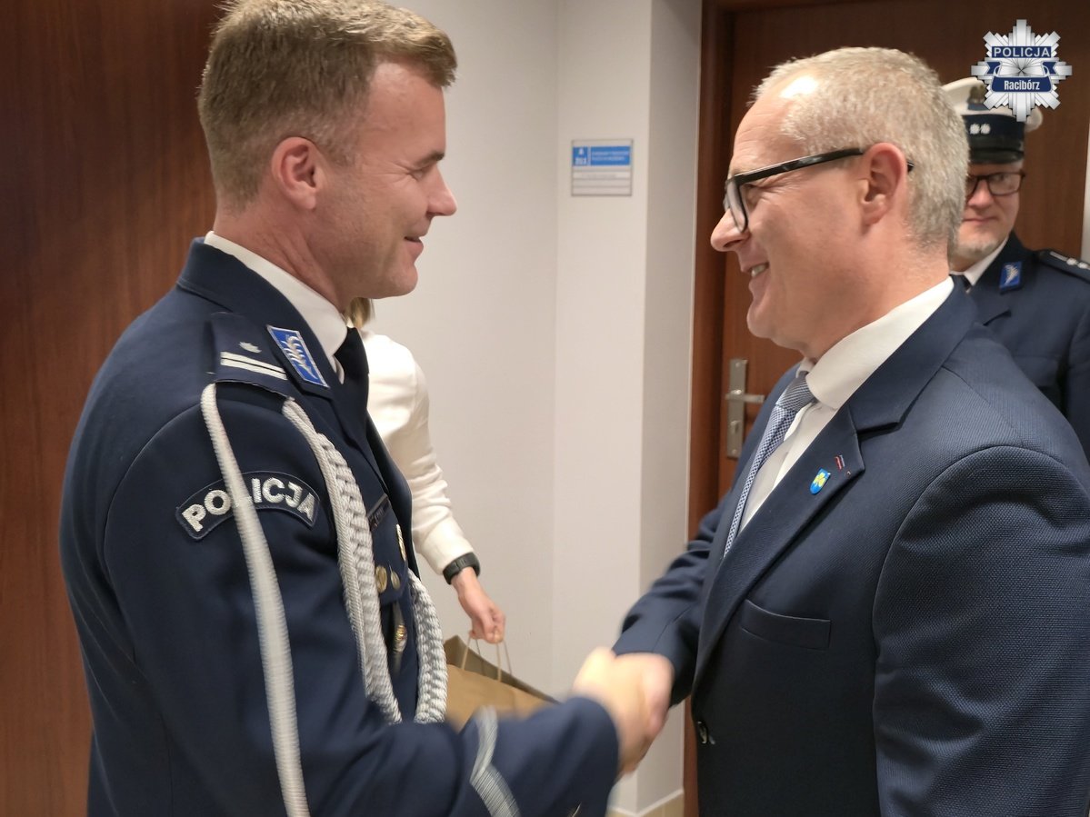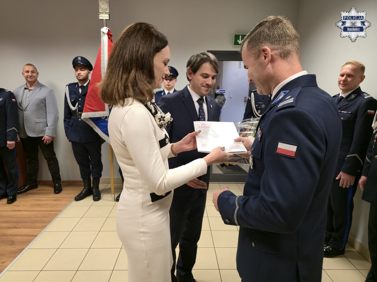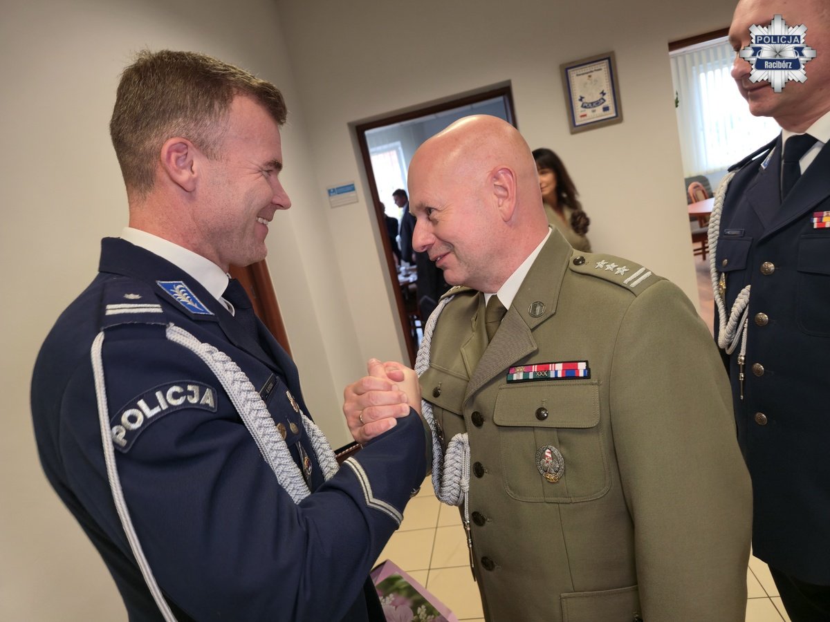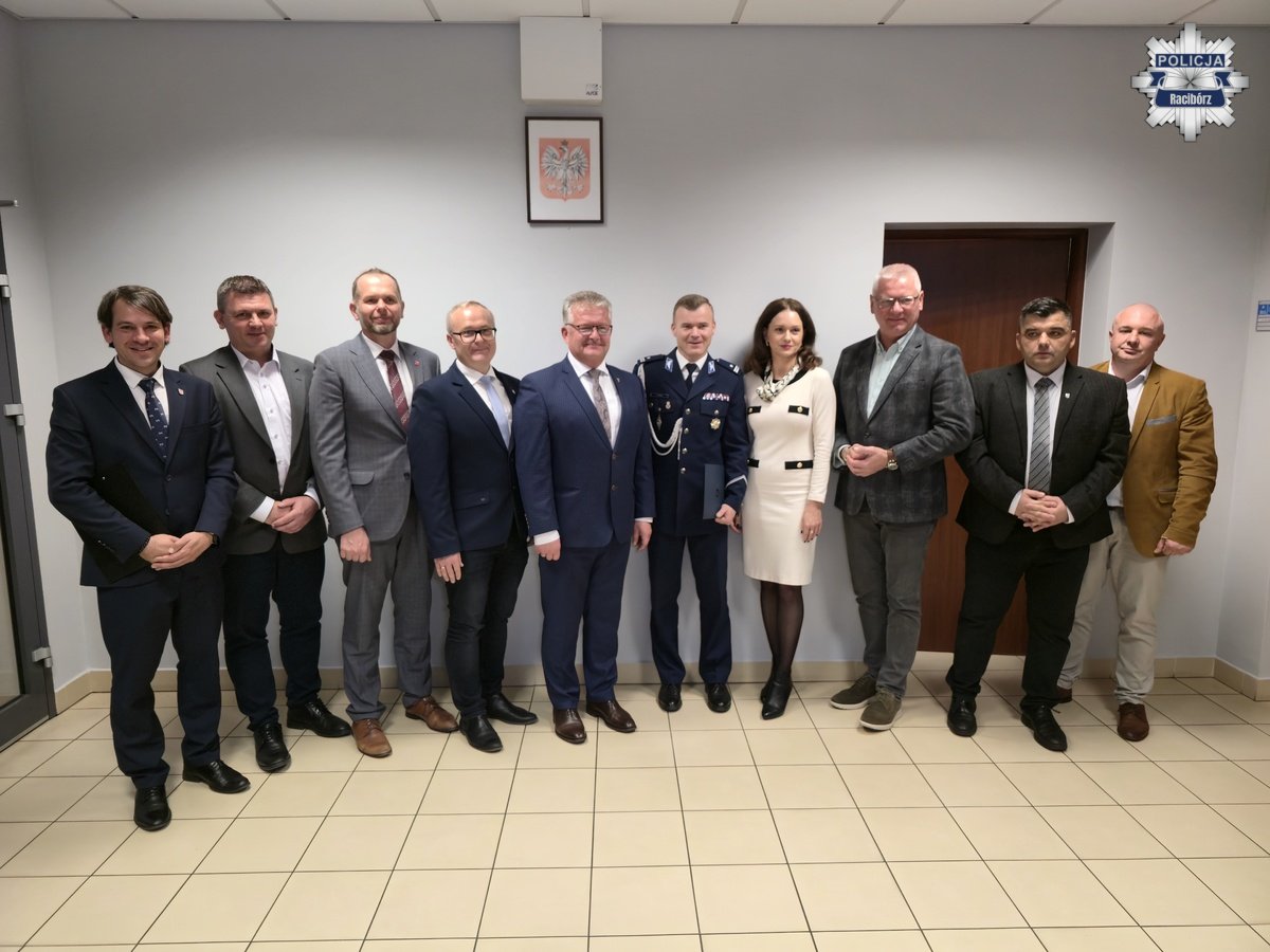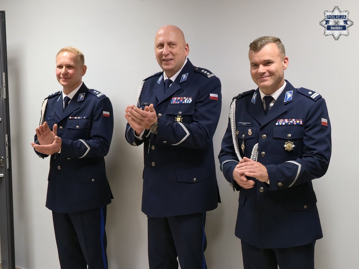 Słowa uznania i życzenia przekazał również w imieniu wszystkich gości Zastępca Prezydenta Miasta Racibórz Pan Michał Kuliga, który podkreślił znaczenie dobrej współpracy Policji z samorządem. W ciepłych słowach pożegnał się także podinsp. Marek Ryszka, dziękując swoim współpracownikom za cztery lata wspólnej służby i zaangażowanie w budowanie bezpieczeństwa mieszkańców powiatu. Jak podkreślił, okres pracy w Raciborzu będzie wspominał z ogromnym sentymentem i dumą.